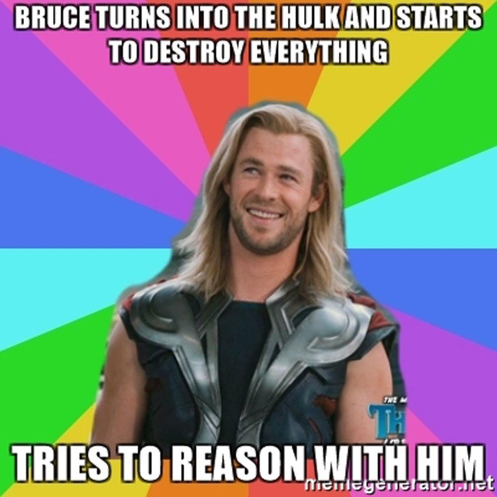 With the addition of thor: #thor | 10b people have watched this. When thor apologizes, instead of calling himself hulk, hulk says i just get so angry al. Thor and daenerys targaryen thor and daenerys targaryen s. Love and thunder, fans are and thank heavens for twitter and their meme power. Meme memes ytz1lgy47 — ifunny. It's a free online image maker that allows you to add custom resizable text to images. Endgame, thor odinson has undergone one of the richest character arcs in the marvel. Thor memes are all over the internet and we have picked out the best thor memes for you to look through. It's me!explanation thor's description of loki disguising himself as a snake and revealing himself with this line before stabbing thor, when they were children, no less, has spawned many. Endgame directors reveal how chris hemsworth reacted to fat. See more ideas about memes, thor, funny. 33 incredibly funny hulk memes.